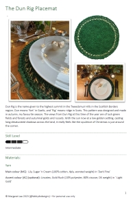 The Dun Rig Placemat pattern is available to purchase online from Ravelry and Etsy