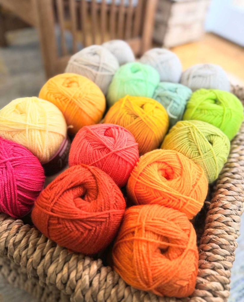 Playing ‘yarn chicken’ is the subject of memes and online jokes. We’ve all been there: one eye on our work and the other on the tail end of our yarn getting shorter and shorter. It is soooo frustrating when the game is lost, and the tail end slips into our work half a row short of the end of the pattern. Or perhaps you’ve settled down to start a new project, only to find your stash doesn’t have everything you need. No yarn, no new project. It’s a variation on the yarn chicken game, but one where you run out before you even start.