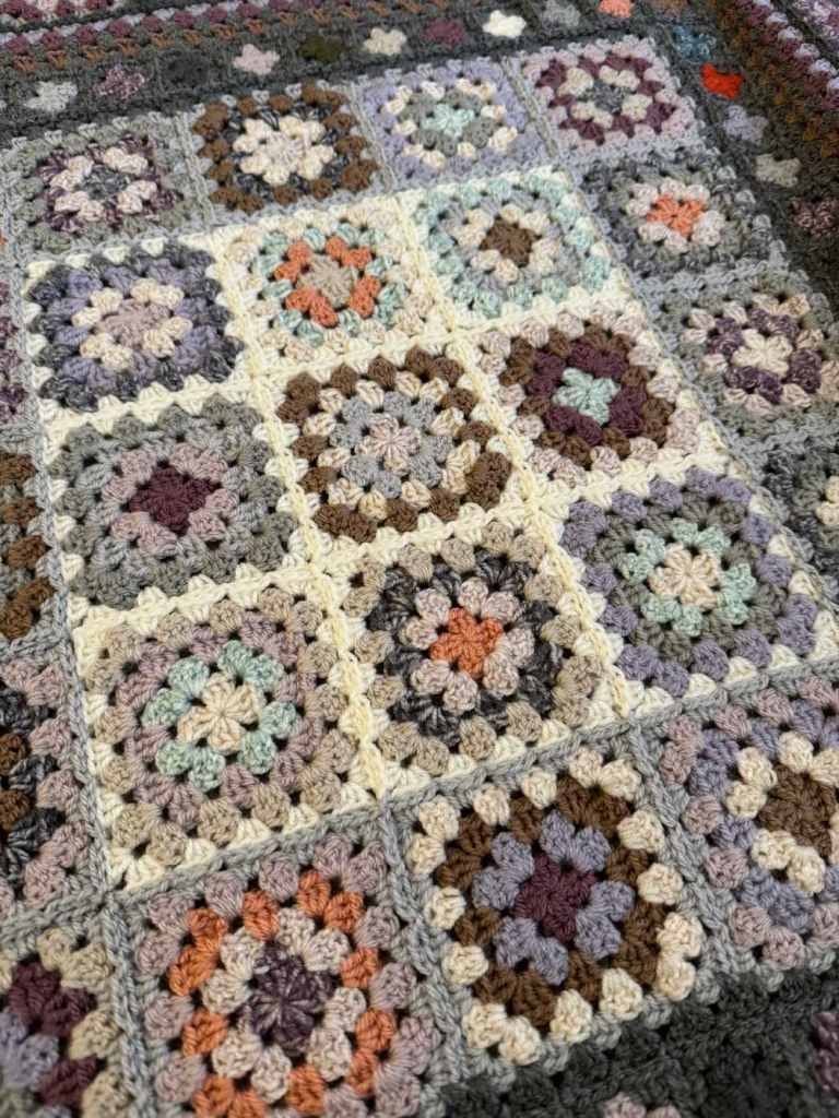 I embarked on her Beach Walk Blanket pattern, a pattern I’ve had for long enough to become out of date, and quite quickly encountered the heart-stopping horror of discovering that one of the colours, a purple, (Pixie-Sarah is now in my head saying, “Well actually, its not quite purple because…”), had been discontinued by Stylecraft. Oh, dear!